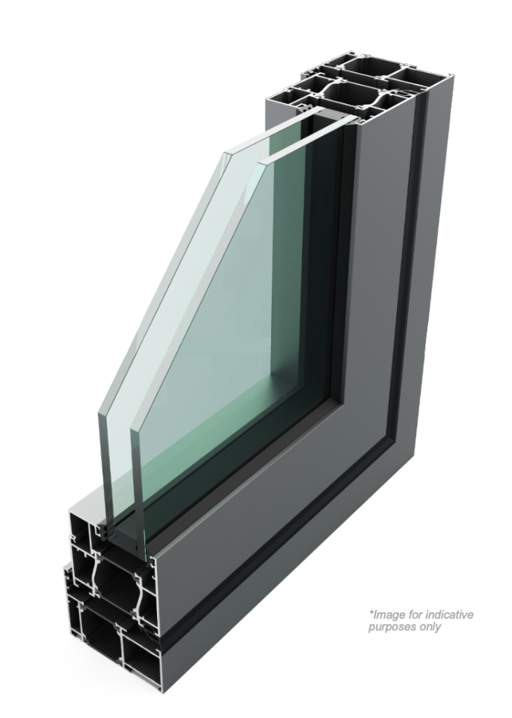SPW600 AOV is constructed using mitred corners, joined with crimped or mechanical cleats; alignment chevrons assist in clean, accurate mitres. Integral transoms and mullions are scribed around the outer frames and fixed with either screw ports or shear blocks. A proprietary sealant is used on all metal joints in line with good practice. Opening window frames are designed to be inserted into the outer frames using butt hinges.